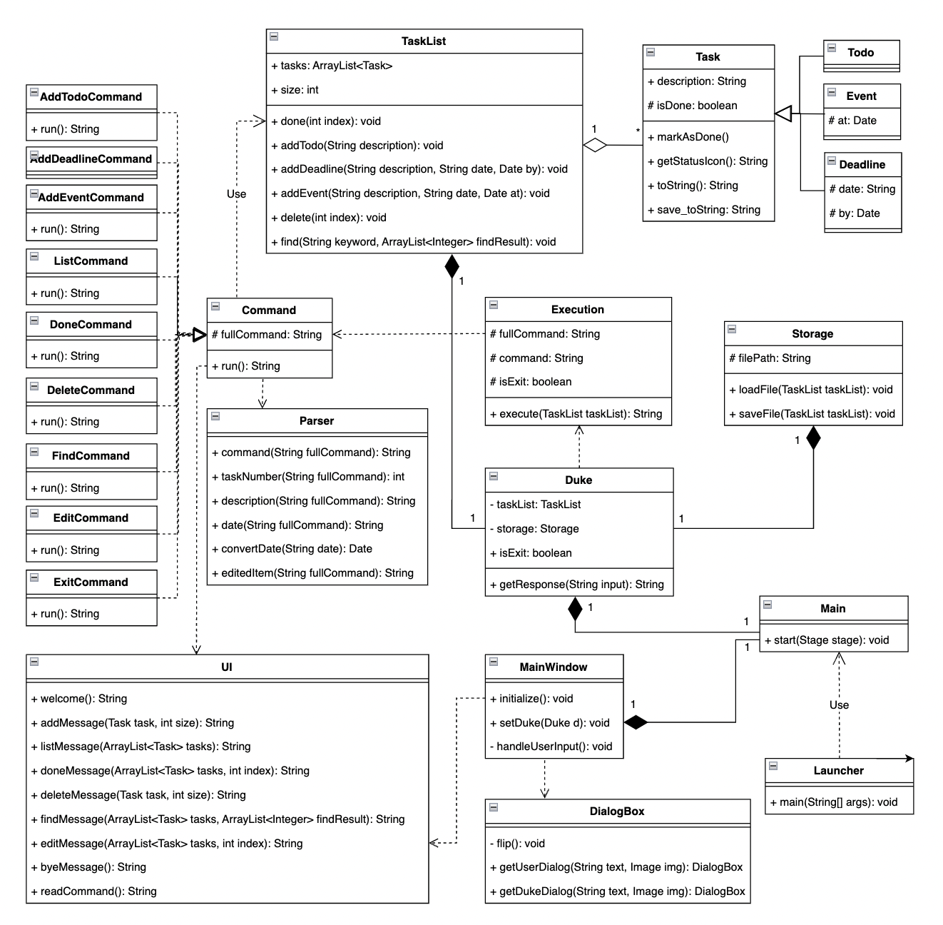 (For all use cases below, the System is DukePro (Duke) and the Actor is the user, unless specified otherwise)