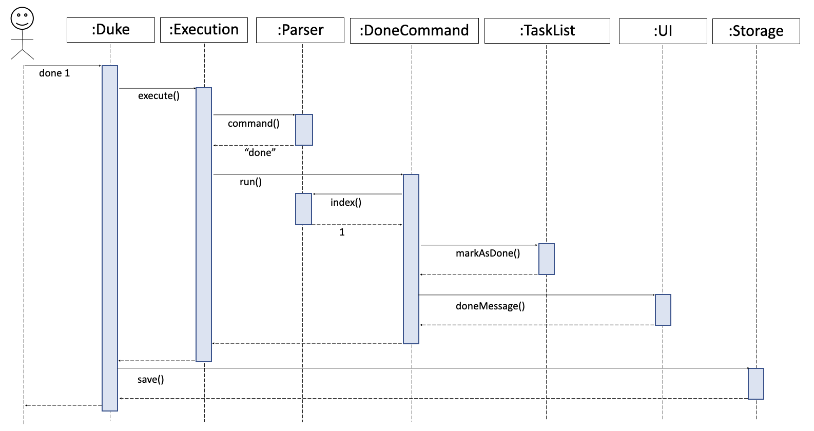 The working flow of the doneCommand is shown in the sequence diagram below.